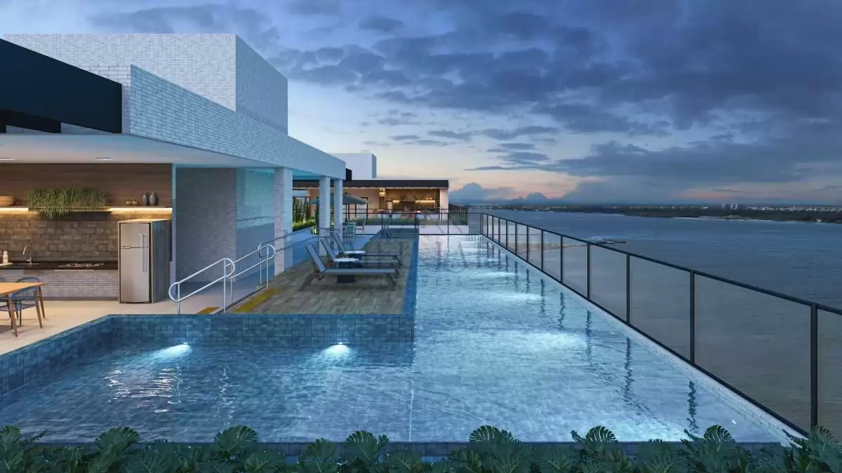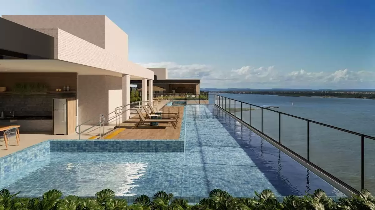 Rooftop 360° com vista panorâmica, piscina de borda infinita, academia climatizada, espaço gourmet e coworking