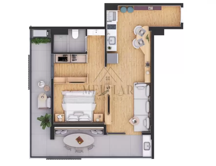 Apartamentos tipo studio, com plantas integradas e alto padrão, disponíveis em: