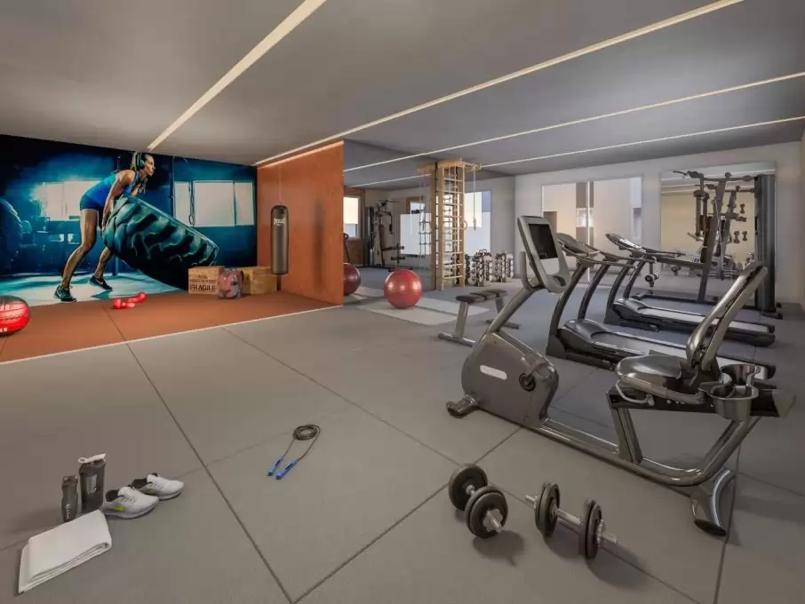 Piscina adulto e infantil com deck molhado, quadra de esportes, parque infantil, pet play, bicicletário, área gourmet, convivência, salão de festas com bar e apoio, academia com espaço boxe e cross, cinema, brinquedoteca, jogos, pub lounge, coworking/office, pet care, espaço zen e mini mercado.