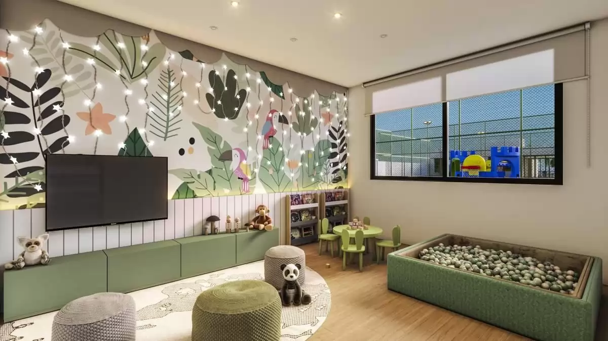 Piscina adulto e infantil com deck molhado, quadra de esportes, quadra de beach tennis, parque infantil, pet play, bicicletário, 2 áreas gourmet sendo uma com piscina privativa, lounge, salão de festas com bar e apoio, academia com espaço boxe e cross, cinema, brinquedoteca, jogos/pub lounge, coworking/office, pet care, espaço zen e mini mercado.