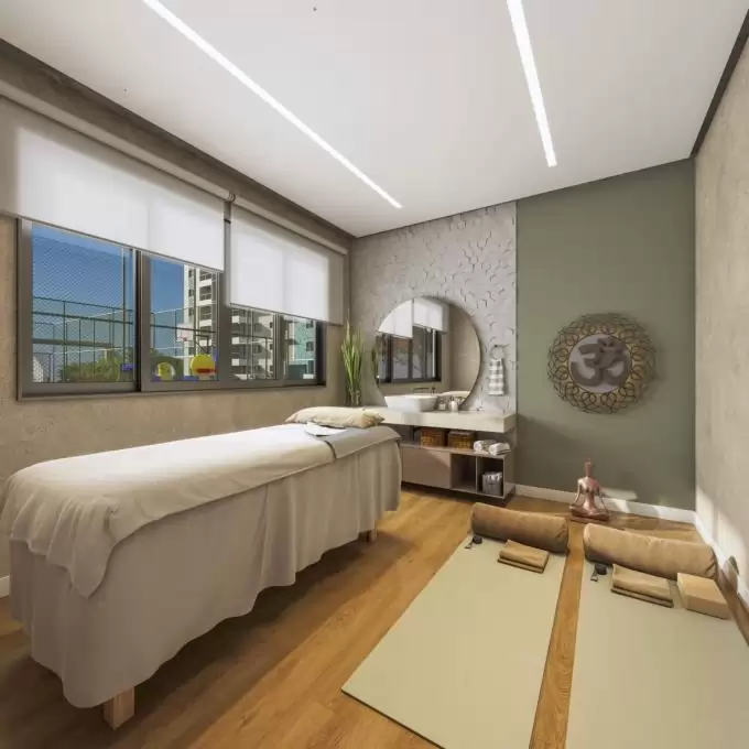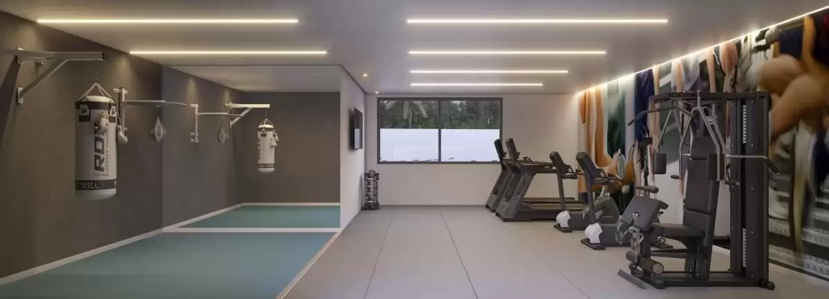 Piscina adulto e infantil com deck molhado, quadra de esportes, quadra de beach tennis, parque infantil, pet play, bicicletário, 2 áreas gourmet sendo uma com piscina privativa, lounge, salão de festas com bar e apoio, academia com espaço boxe e cross, cinema, brinquedoteca, jogos/pub lounge, coworking/office, pet care, espaço zen e mini mercado.
