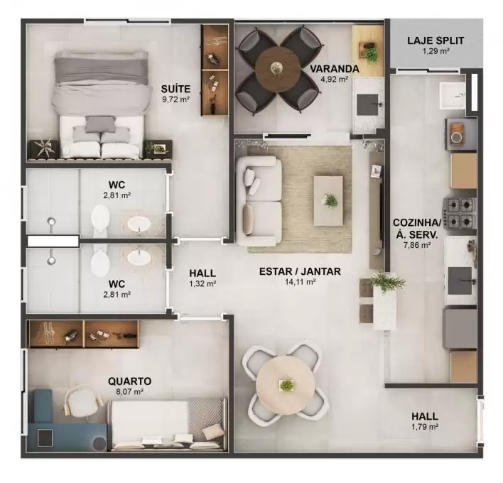 Área Total: 60,51m²