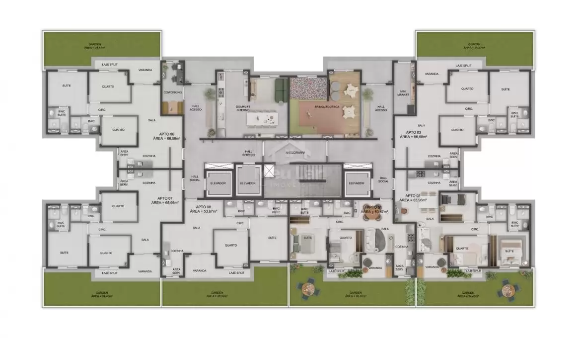 - Unidades Garden, com áreas externas privativas
